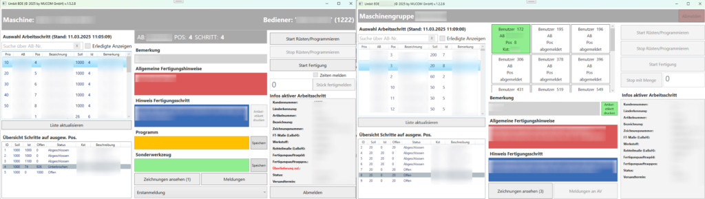 Betriebsdatenerfassung für mehrere Arbeitsplätze an einem Tablet